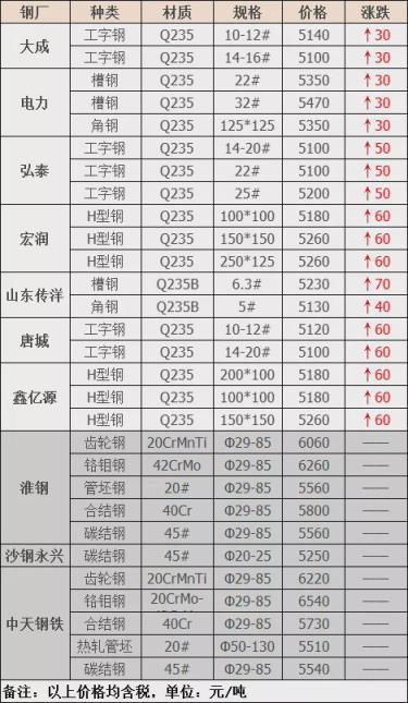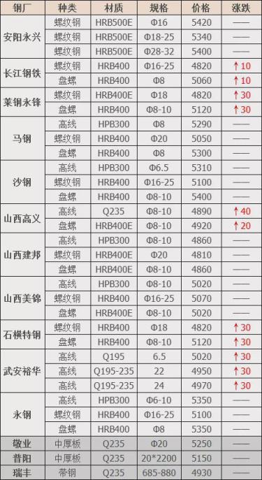 上調(diào)7家,占比70%,調(diào)價(jià)幅度30-60元/噸;
