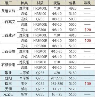 上調(diào)2家,占比11.8%,調(diào)價幅度20-50元/噸,